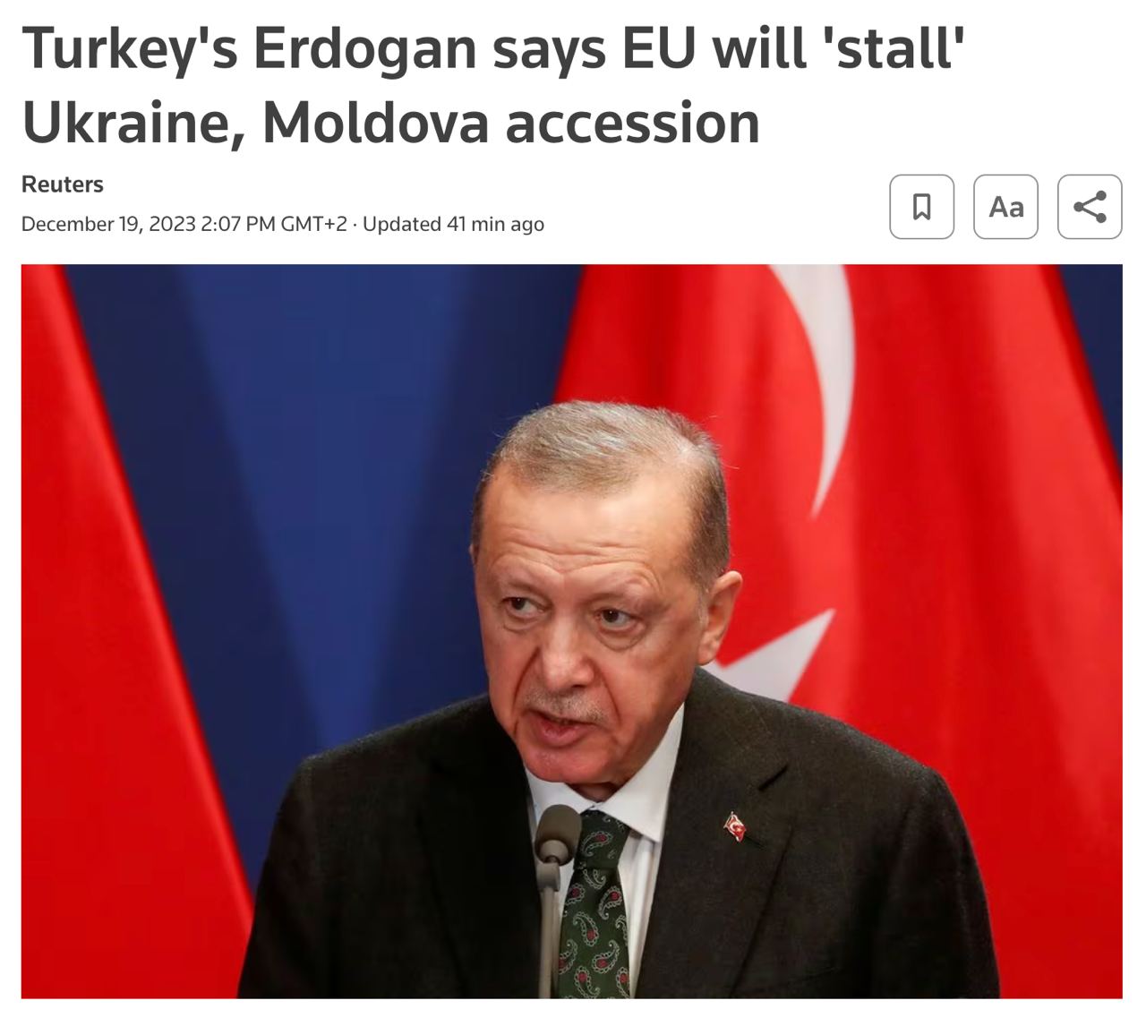 Президент Турции Реджеп Тайип Эрдоган считает, что Евросоюз будет тормозить принятие Украины и Молдовы.