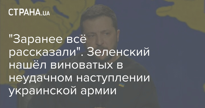 По мнению Зеленского, причина была в том, что украинские политики заранее сказали, где будут наступать войска, что позволило россиянам хорошо к этому подготовиться.