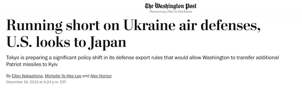 09.32 Япония, как ожидается, в ближайшие дни разрешит экспорт в США нескольких десятков ракет к системе ПВО Patriot, сообщает The Washington Post.