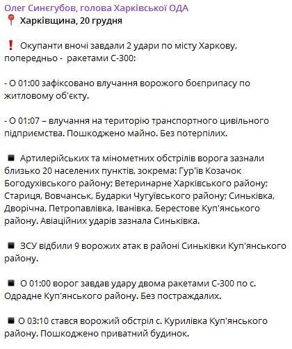 08.22 Оккупанты ночью нанесли 2 удара по городу Харькову, предварительно - ракетами С-300.