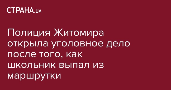 Полиция Житомира расследует обстоятельства инцидента, в результате которого 9-летний мальчик на ходу выпал из маршрутки и был травмирован. Об этом сообщает ТСН.