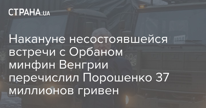 Накануне запланированной встречи с премьер-министром Венгрии Виктором Орбаном народный депутат Петр Порошенко получил от венгерского министерства финансов 37 миллионов гривен.