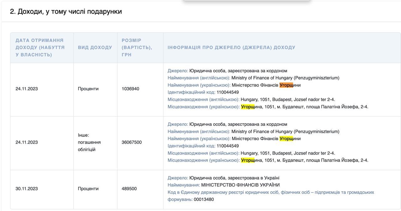 "За последнее время соответствующие доходы от этих бумаг были получены из США, Великобритании, Франции, Венгрии и т.д., о чем сразу было сообщено НАПК установленным законом способом", - говорится в посте.