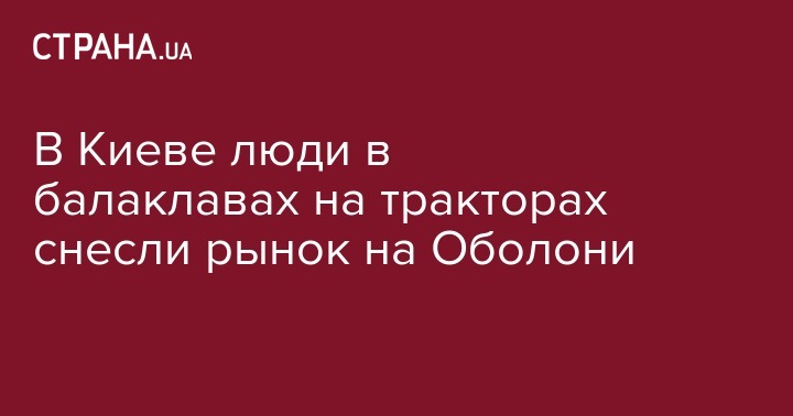 Ночью, 15 декабря, два трактора снесли рынок в районе метро Оболонь. Технику сопровождали люди в балаклавах. Об этом в Facebook сообщает dtp.kiev.ua.
