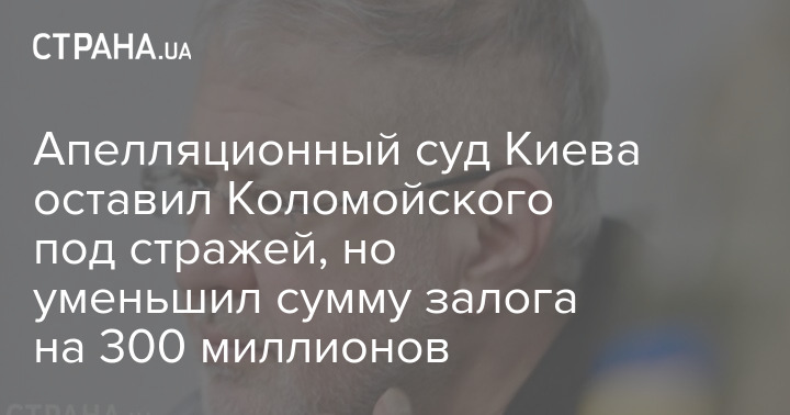 Киевский апелляционный суд отказал бизнесмену Игорю Коломойскому в изменении меры пресечения. Но уменьшил ему сумму залога до 2,7 миллиардов гривен - то есть на 300 миллионов.
