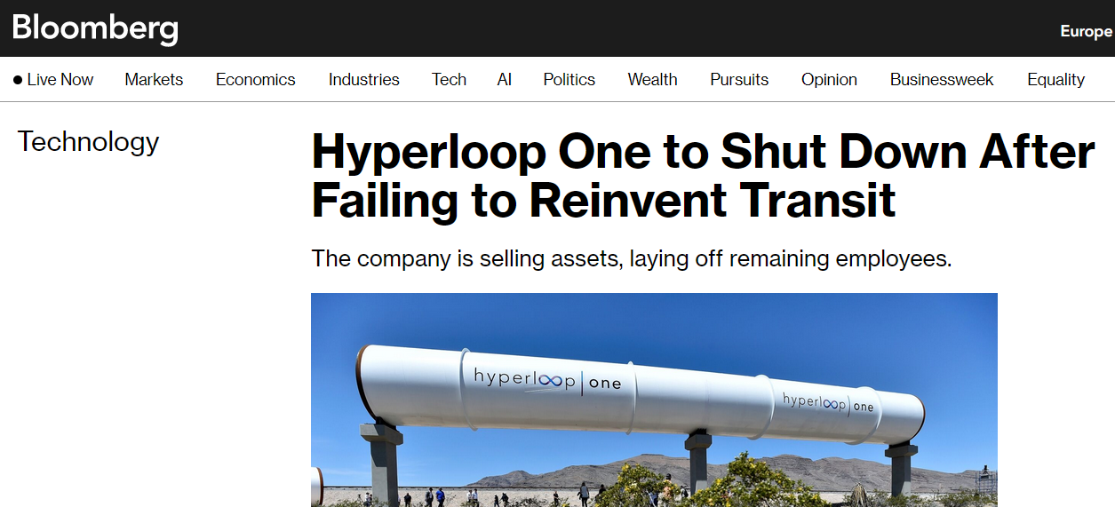 Компания Hyperloop One, которая строила вакуумные поезда по идее американского бизнесмена Илона Маска, закрывается.