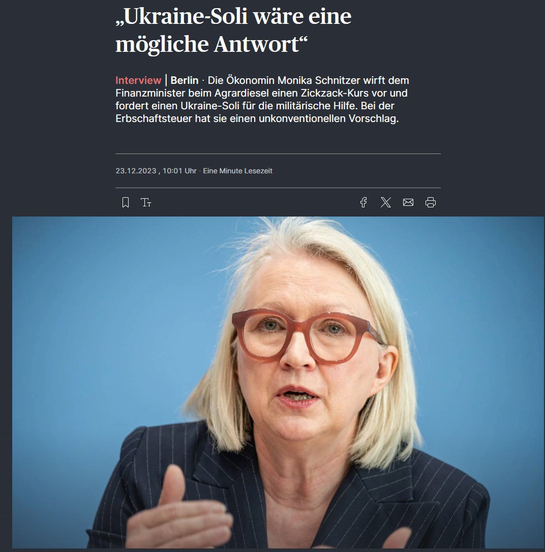 "Особые события требуют особых мер. Солидарность с Украиной в качестве введения надбавки к подоходному налогу для военной помощи была бы возможным ответом на этот вызов", - заявила Шнитцер.