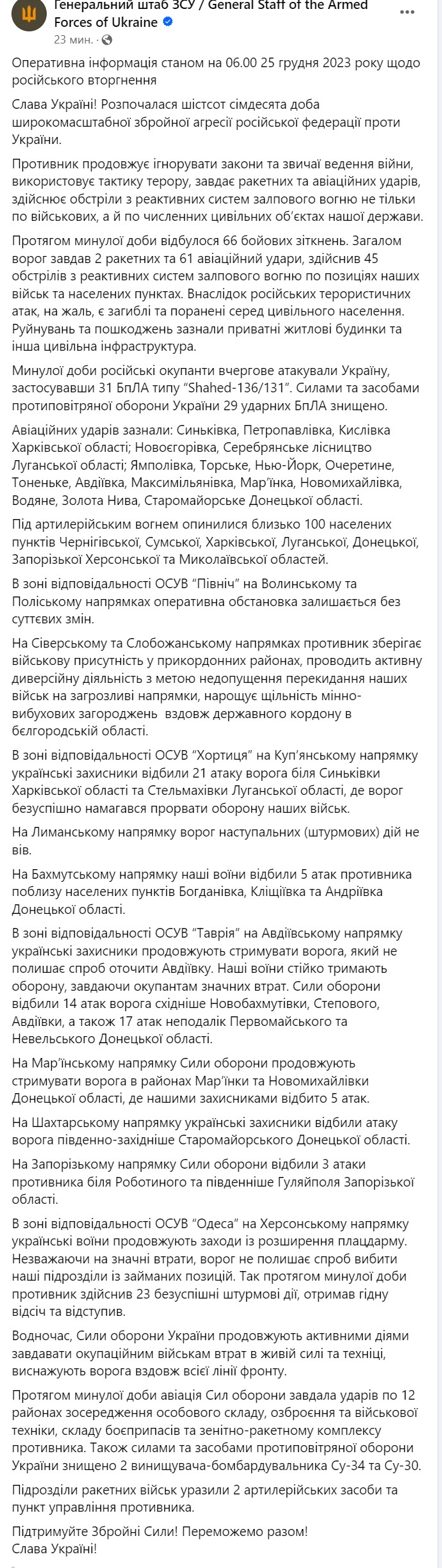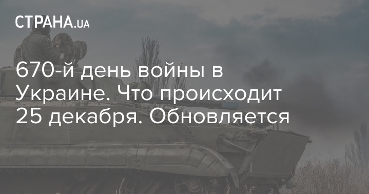 В понедельник, 25 декабря, в Украине идет 670-й день войны с Россией.