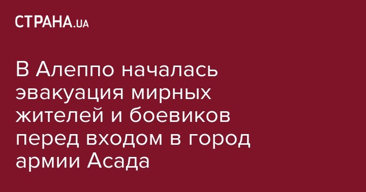 В восточной части Алеппо началась эвакуация мирных граждан. Здесь находятся автомобили скорой помощи, чтобы эвакуировать раненых и больных сирийцев из оставшихся подконтрольных ИГИЛу районов города, передает УНН со ссылкой на Associated Press.