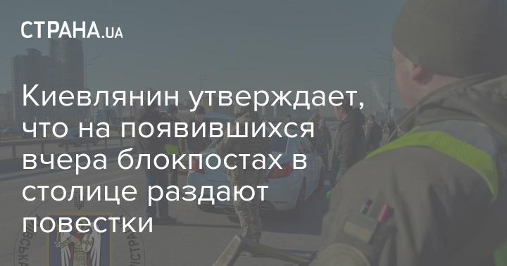 Украинские телеграм-каналы публикуют анонимное письмо, в котором утверждается, что на новых блокпостах в Киеве раздают повестки, хотя власти эту информацию опровергали.
