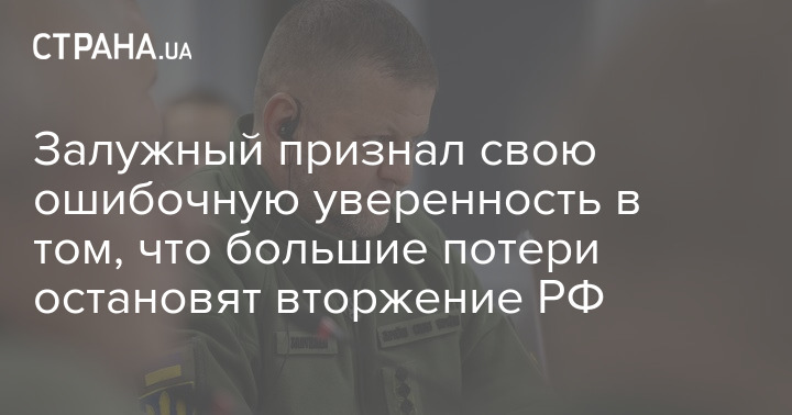 Главнокомандующий ВСУ Валерий Залужный заявил, что ошибался, когда думал, что большие потери остановят вторжение РФ.