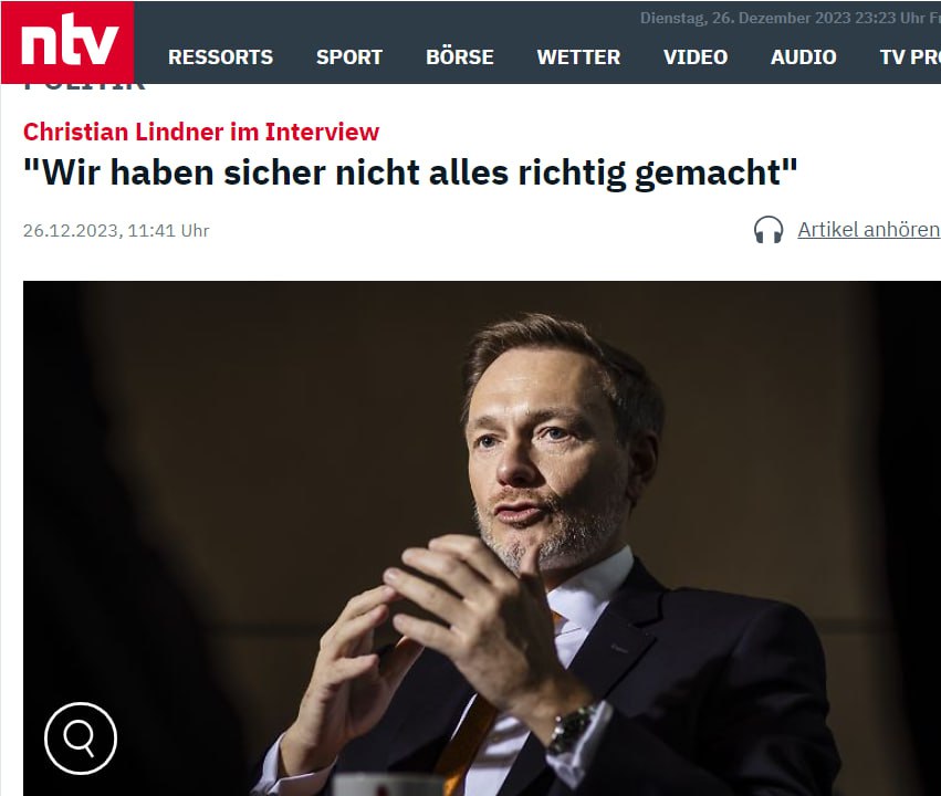 Об этом заявил глава Минфина ФРГ Кристиан Линднер в эфире N-TV.