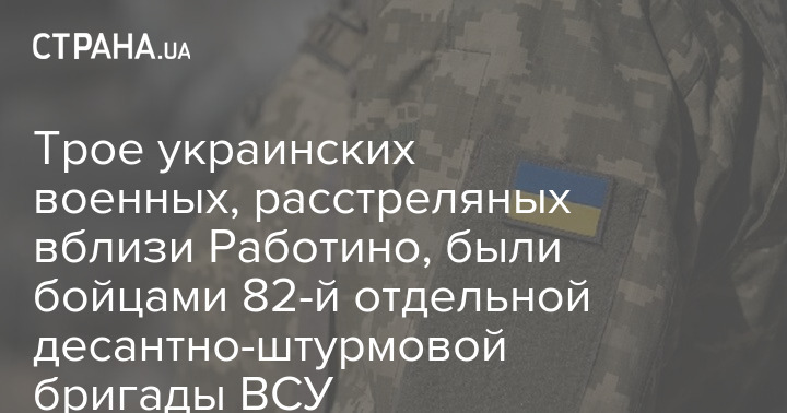 В Генштабе ВСУ сообщили, что трое украинских военных, которые были расстреляны вблизи Работино на Запорожье, были бойцами 82-й отдельной десантно-штурмовой бригады ВСУ.