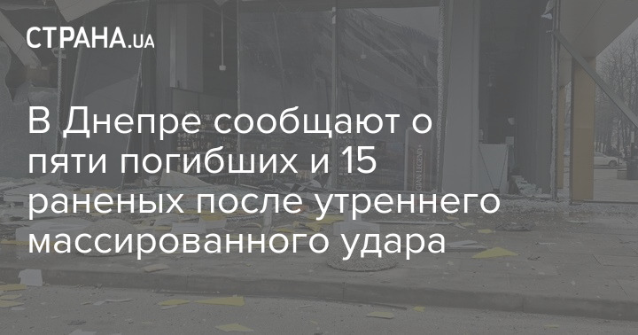 В Днепре сообщают о пяти погибших и 15 раненых после утреннего массированного удара