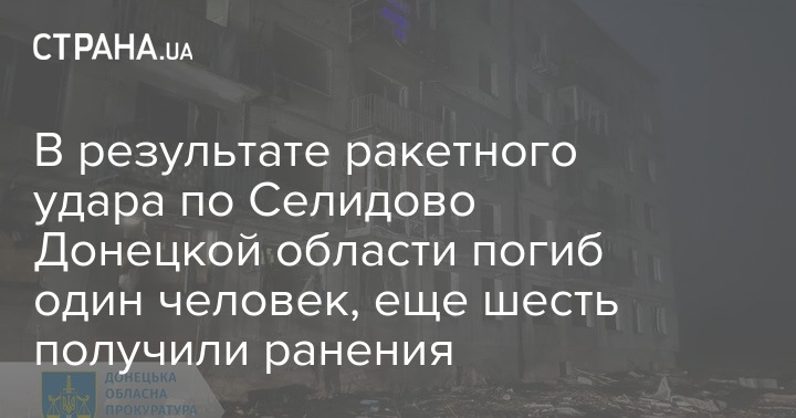 В результате ракетного удара РФ по Селидово Донецкой области погиб один человек, еще шесть ранено. Повреждено шесть многоэтажек.