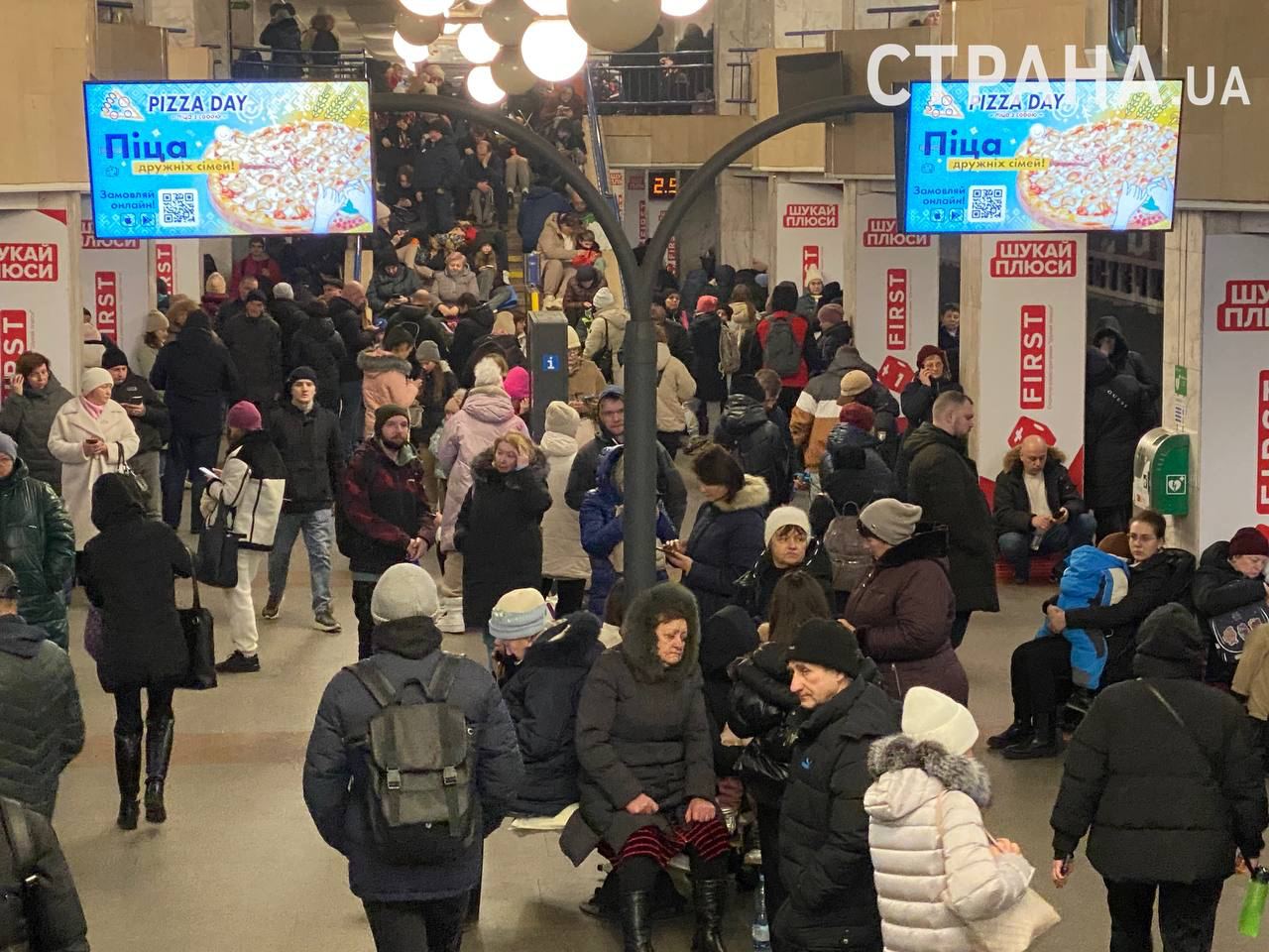 09.15 Обстановка в Киевском метро. Многие спускаются в подземку чтобы там переждать обстрелы.