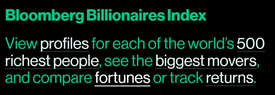 Это следует из рейтинга Bloomberg, в котором названы 500 самых богатых людей мира.