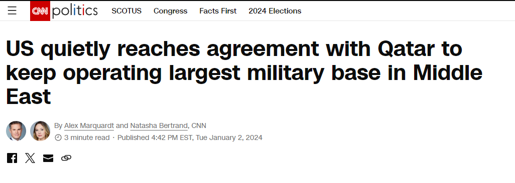 Ранее сообщалось, что Катар называется основным спонсором ХАМАС. Лидер ХАМАС Исмаил Хания живет в Дохе. То есть, учитывая небольшой размер страны, буквально по соседству с американской военной базой.