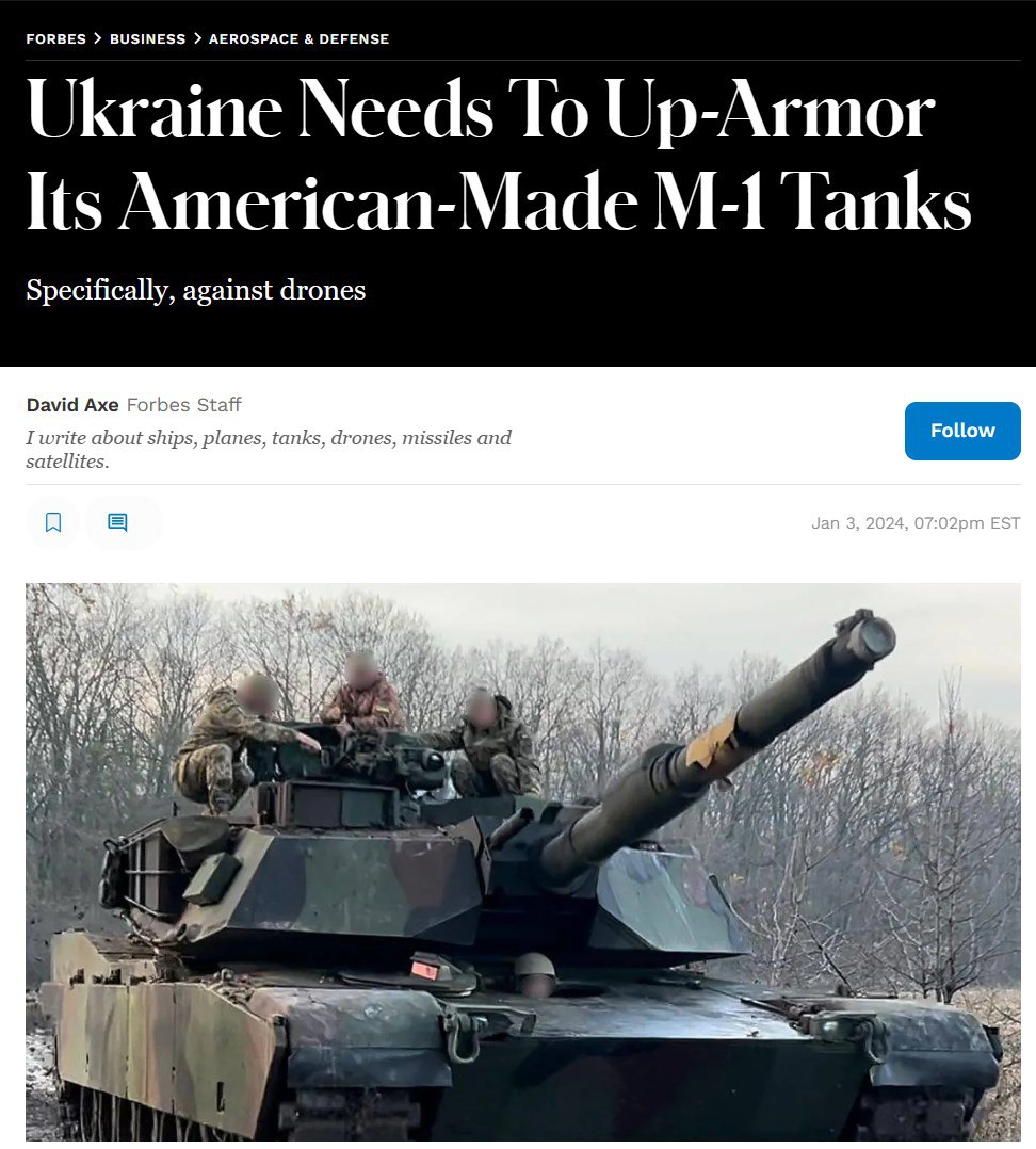 Их отсутствие на поле боя связывают с тем, что американские танки уязвимы для FPV-дронов сверху и сбоку. Там у М1 наиболее тонкая броня.