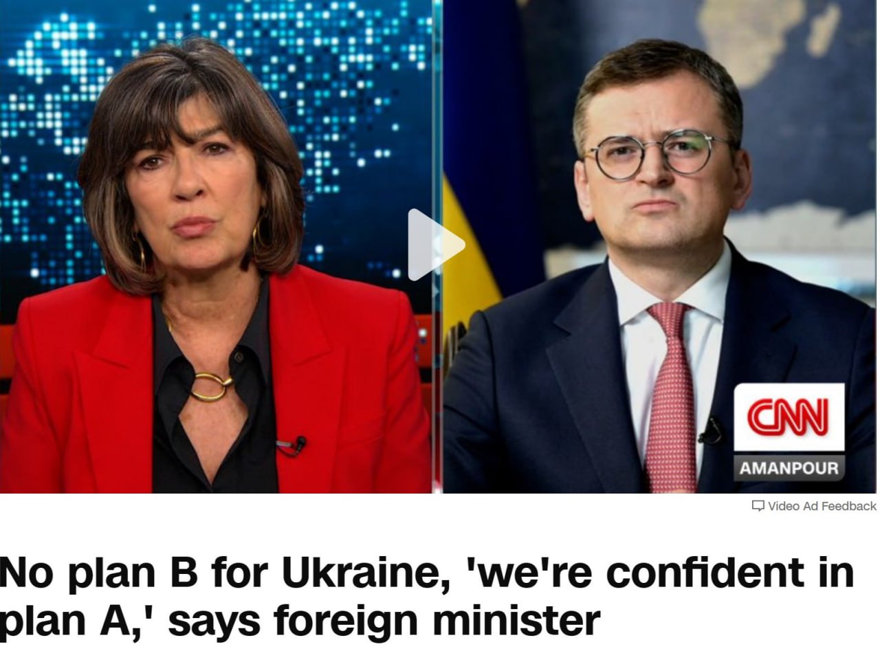"У нас нет плана "Б". Мы уверены в плане "А", - ответил Кулеба на вопрос, что Киев будет делать в случае дефицита военной помощи. При этом он добавил, что "Украина всегда будет бороться с имеющимися у нее ресурсами".