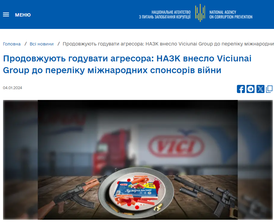 НАПК внесло литовского производителя крабовых палочек в список международных спонсоров войны