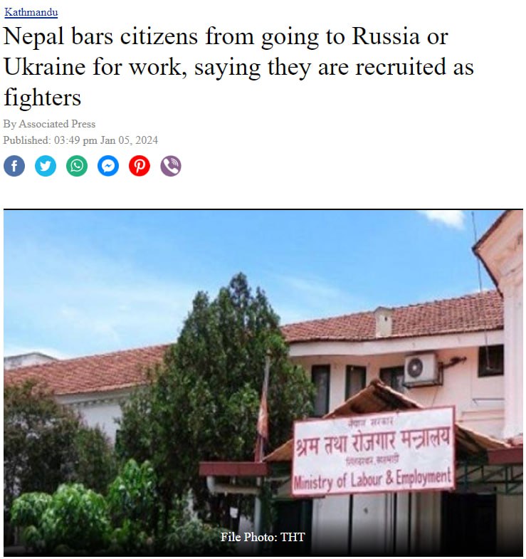 Правительство Непала перестало выдавать гражданам разрешения на поездки на заработки в Россию и Украину в связи со случаями вербовки для службы в армии и участия в военном конфликте между странами.