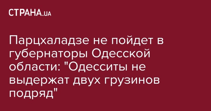"Я еще не подал, и думаю, что уже не успею, даже если бы хотел. Если честно, я бы не очень хотел. Не переживут одесситы два раза губернатора одной национальности", – сказал Парцхаладзе.