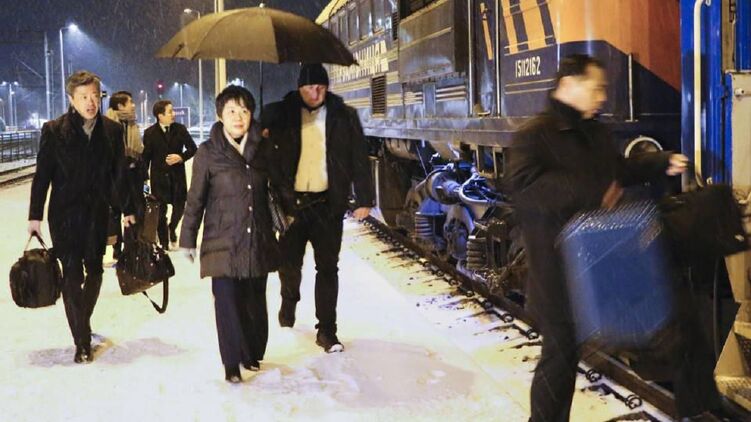 Глава МИД Японии прибыла в Киев на поезде из Польши.