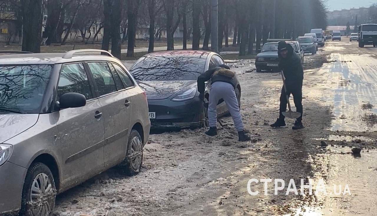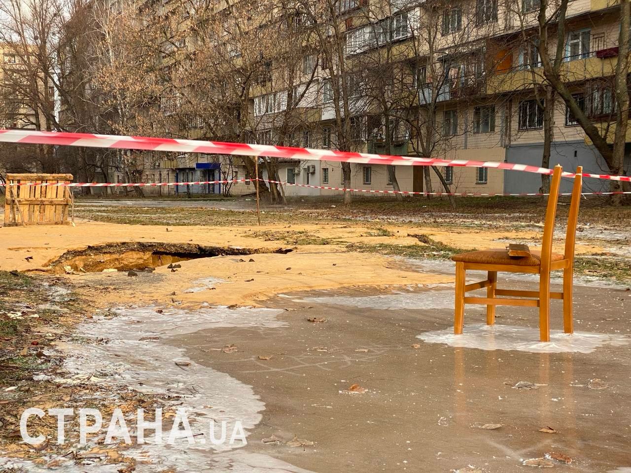 Последствия водопроводной аварии на Борщаговке в Киеве. Фото: "Страна"