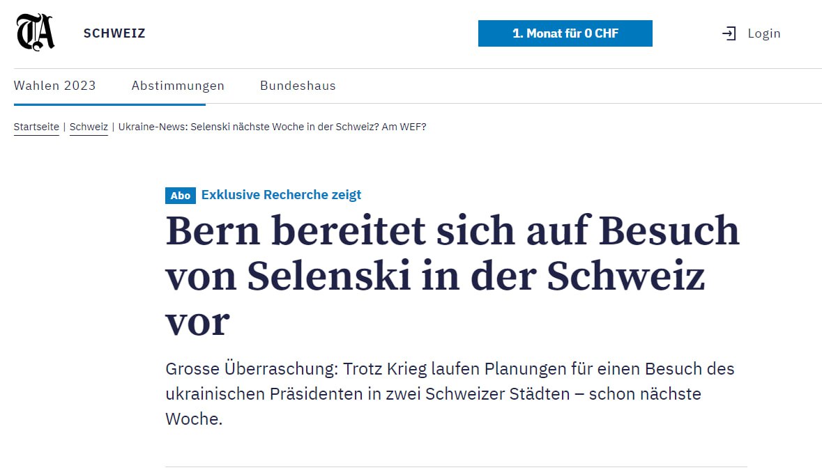 В январе президент Украины Владимир Зеленский планирует посетить Всемирный экономический форум в Давосе, а также столицу Швейцарии город Берн.