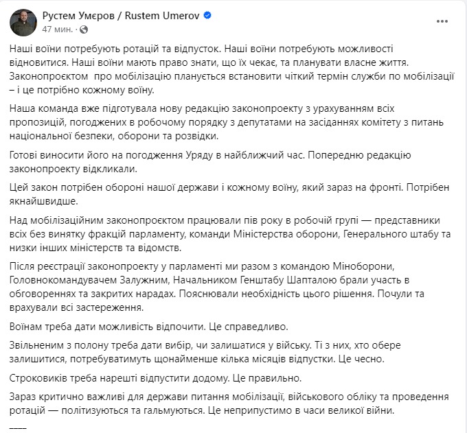 "Наша команда уже подготовила новую редакцию законопроекта с учетом всех предложений, согласованных в рабочем порядке с депутатами на заседаниях комитета по национальной безопасности, обороне и разведке", - написал министр в Фейсбуке.