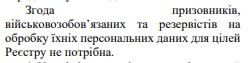 - сведения о членах семьи военнообязанного, призывника, резервиста, включая имена, дату рождения, серию и номер паспорта, идентификационный код – по согласию военнообязанного, призывника, резервиста;