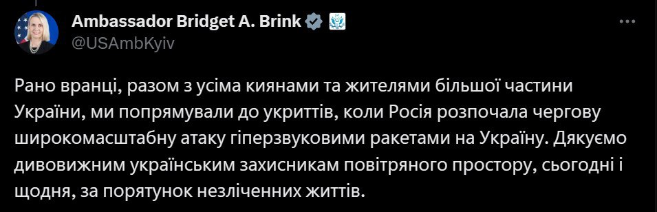 9.42 Посольство США в Киеве заявило, что этим утром его работники вынуждены были спускаться в укрытия из-за ракетной атаки.