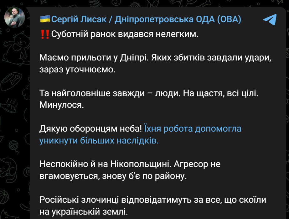 10.38 В Днепре есть прилеты после утренней ракетной атаки, сообщила ОВА.