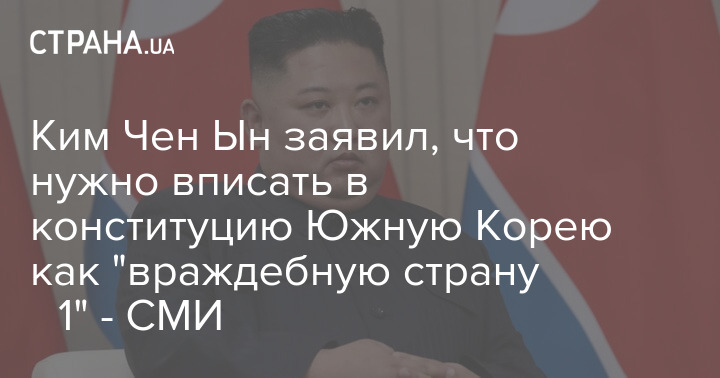 Лидер Северной Кореи Ким Чен Ын призвал пересмотреть конституцию страны, чтобы определить Южную Корею как "враждебную страну № 1" и закрепить обязательство по "полной оккупации" территории Южной Кореи в случае войны.