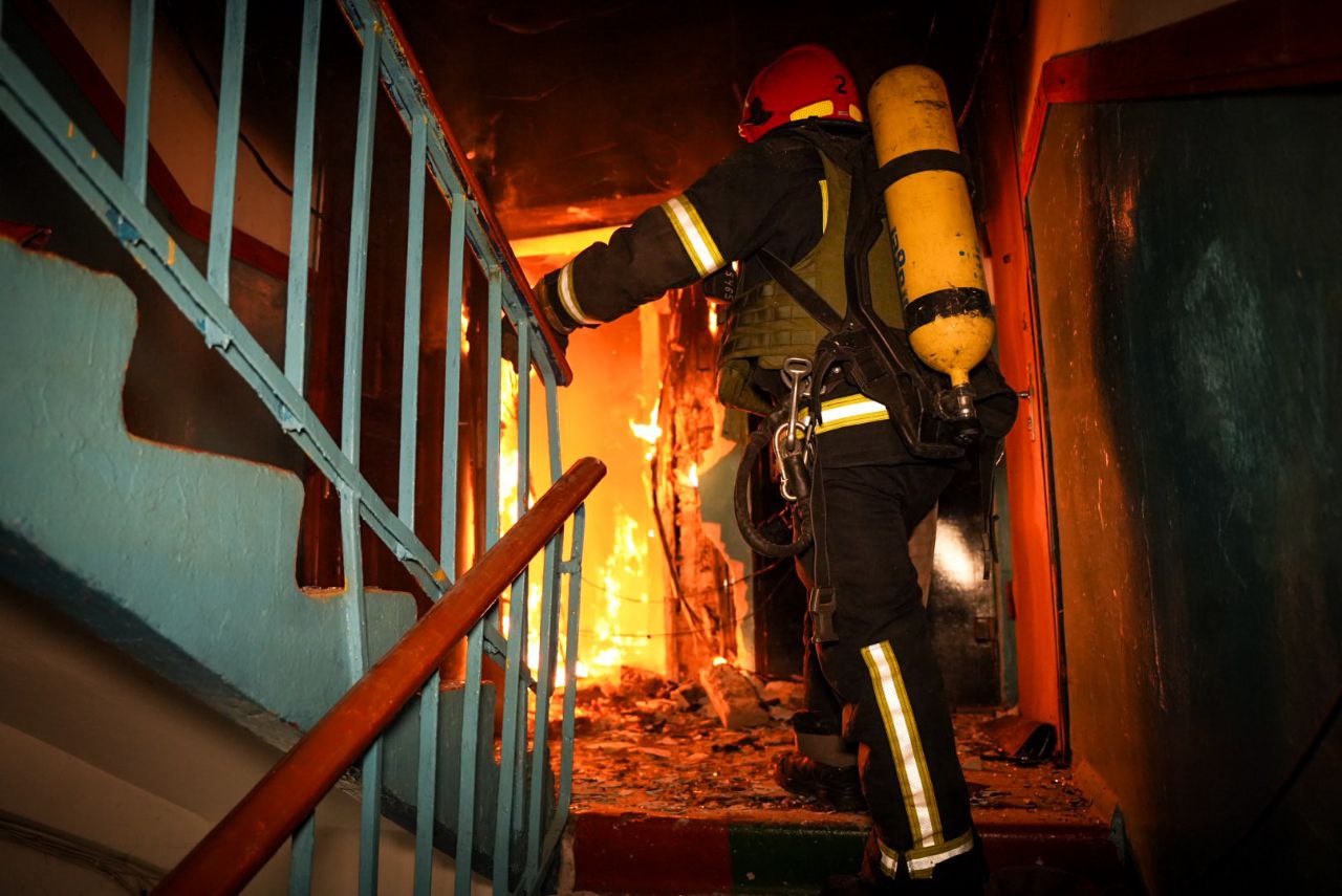 В результате вражеской атаки произошло возгорание газовой трубы, четырех припаркованных легковых автомобилей, балконов и квартиры пятиэтажного жилого дома на общей площади 50 кв.м.