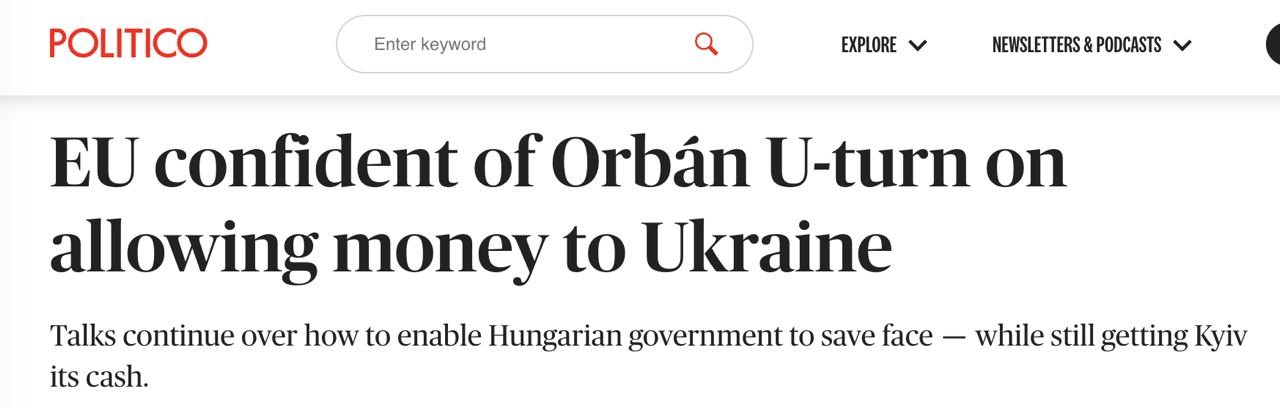 А также, что Венгрия может снять вето на помощь ЕС Украине, если финансирование будет пересматриваться ежегодно.