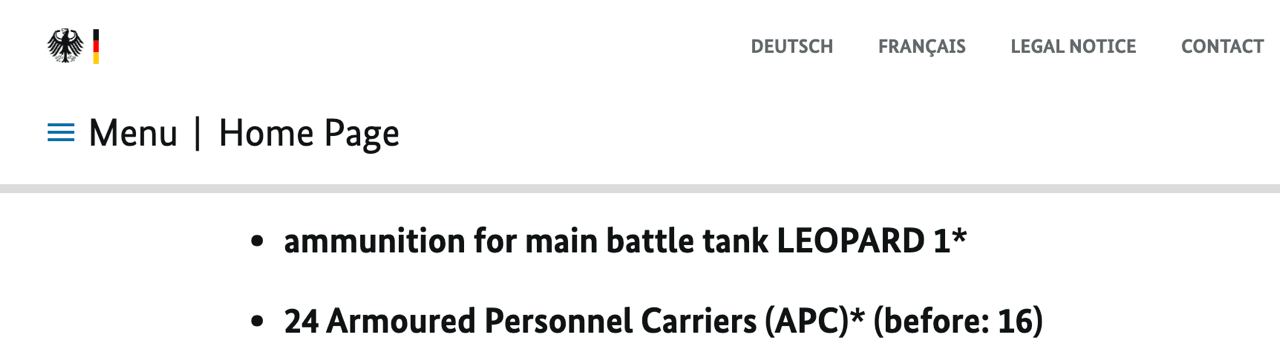 Боеприпасы для танков, шлемы, лампы. Германия объявила о новом пакете помощи для ВСУ