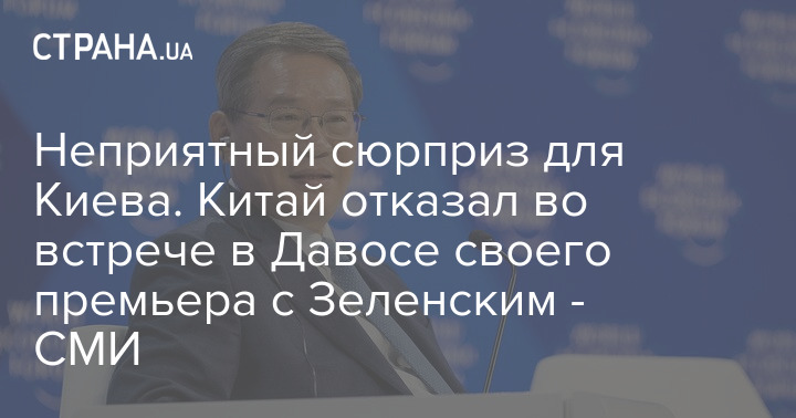 Китай отклонил просьбу Украины о встрече в Давосе премьер-министра КНР Ли Цяна с президентом Владимиром Зеленским.