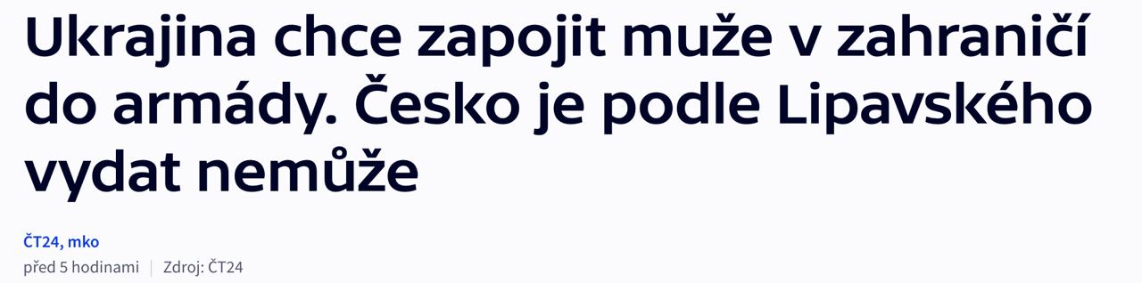 Чешский министр иностранных дел Ян Липавский заявил, что Чехия не будет высылать украинцев на родину для службы в армии.