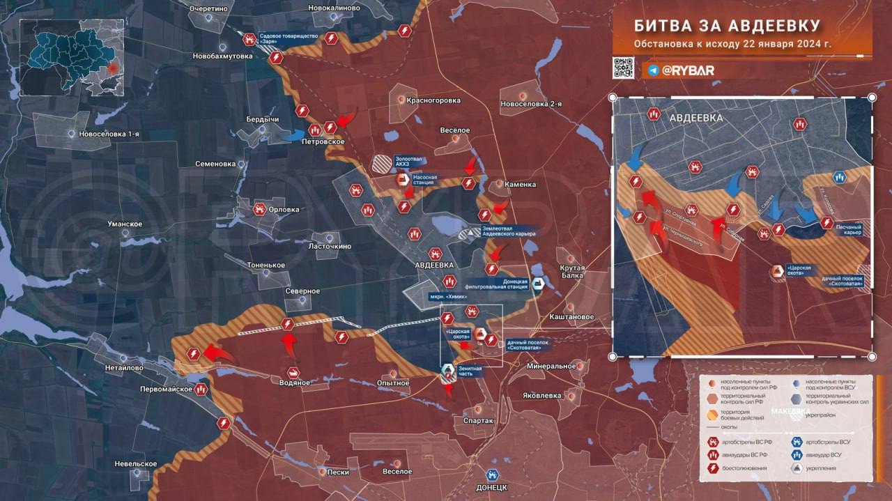 Российские телеграм-каналы пишут о мощных контратаках ВСУ на юге Авдеевки с целью отбить потерянные позиции, но утверждают, что позиции армия РФ удержала. Украина этого не комментировала.