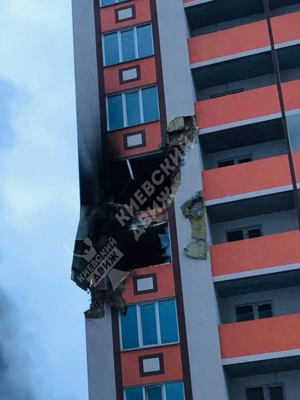 08.12 Зафиксировано падение обломков ракет на крышу многоэтажки в Дарницком районе Киева.
