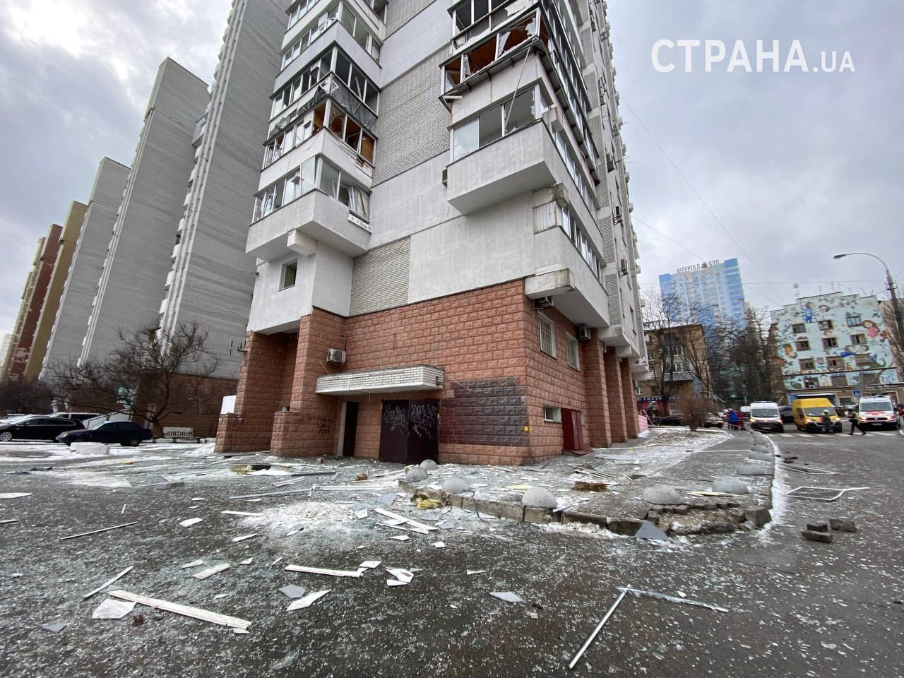 - в Соломенском районе в многоэтажке выбило окна, в нескольких квартирах произошло возгорание. Разрушено двухэтажное нежилое здание.