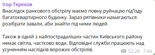 Позже глава Харьковской ОВА Олег Синегубов сообщил, что в результате попадания по жилому дому в Харькове погибли две женщины.