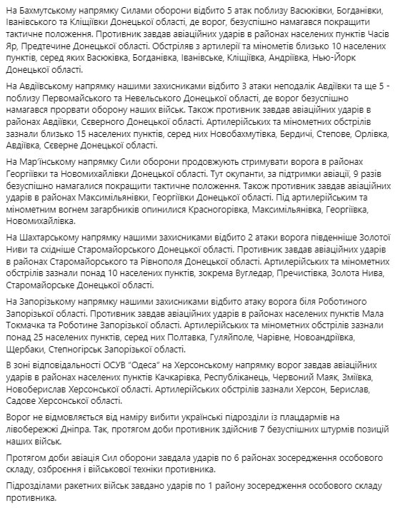 Всего враг нанес 48 ракетных и 112 авиационных ударов, совершил 73 обстрела из РСЗО.