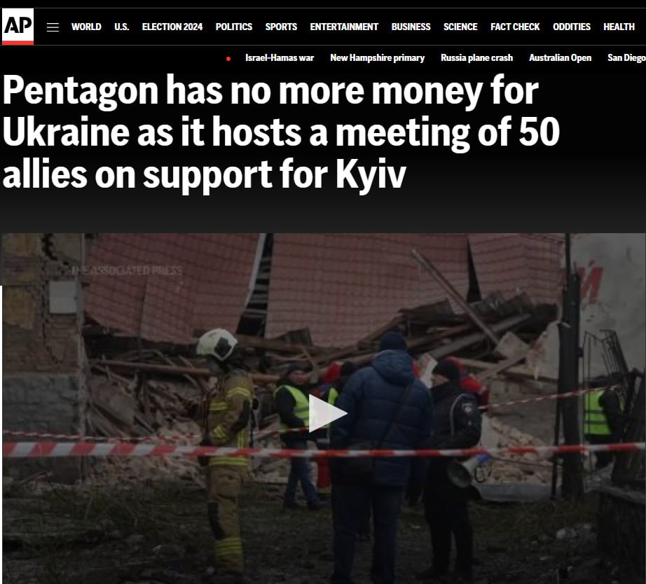 "У США у кончились деньги для помощи Украине, и мы не в состоянии поставлять Киеву ракеты и боеприпасы на том же уровне, что и год назад", – констатировал Остин.