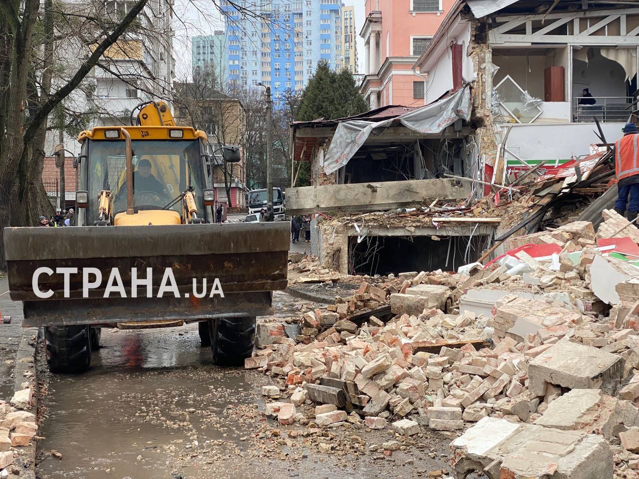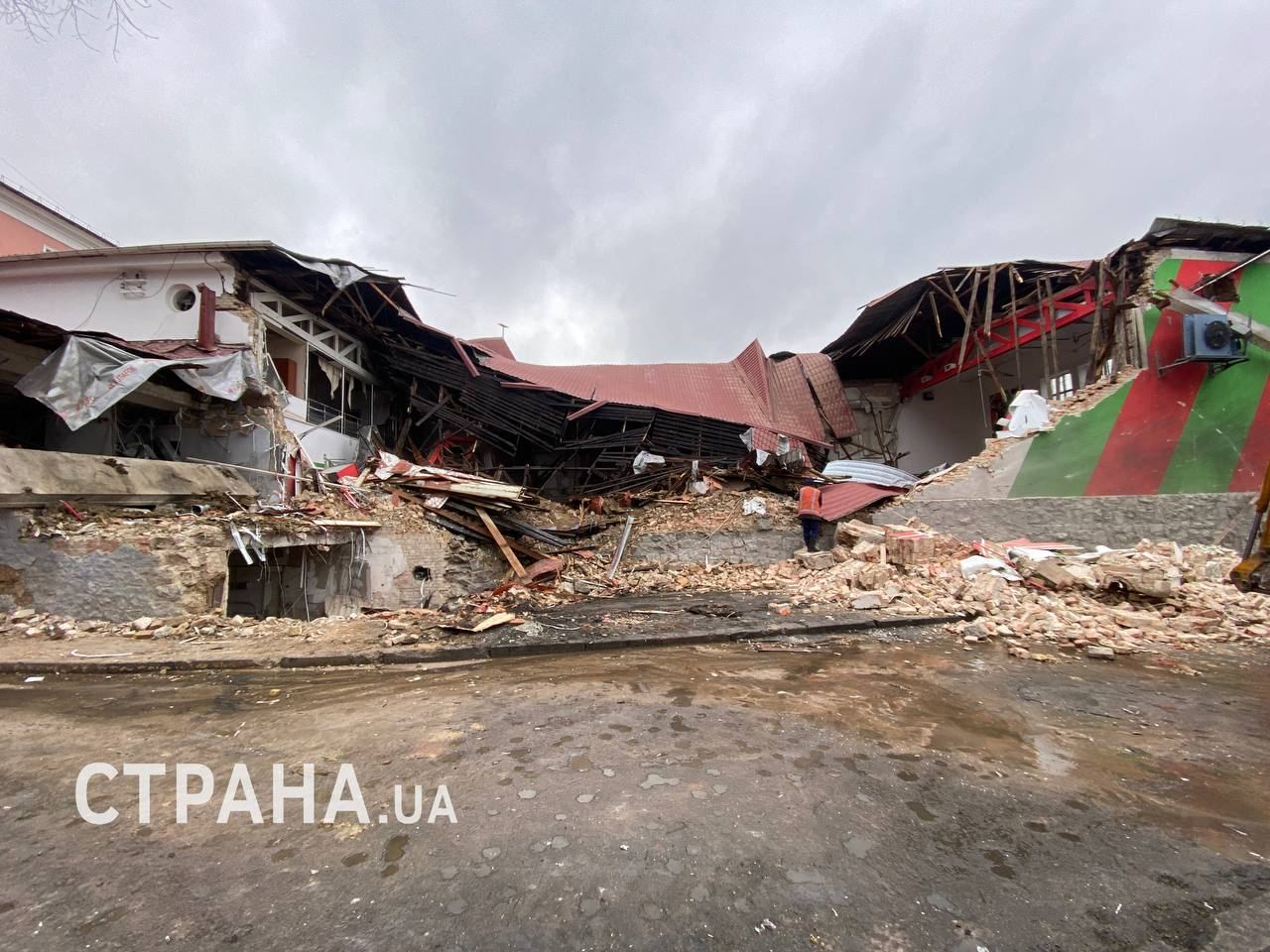 14.40 В Киеве демонтируют разрушенное здание спорткомплекса "Локомотив", которое было повреждено во время атаки 23 января.