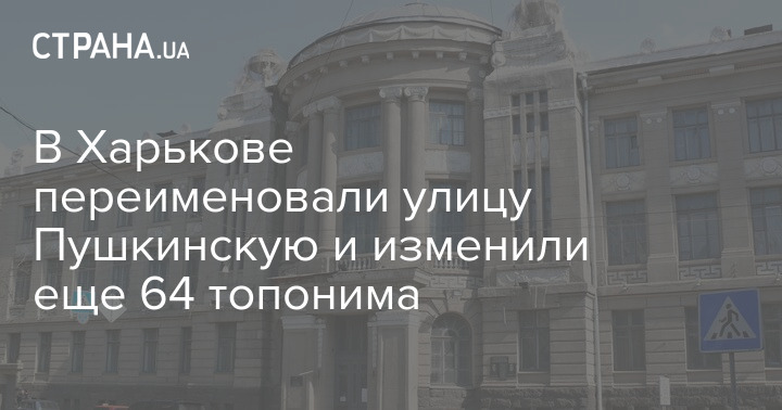 В Харькове переименовали улицу Пушкинскую и изменили еще 64 топонима
