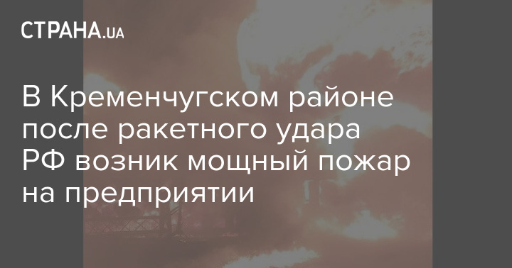 В Кременчугском районе Полтавской области после ракетного удара россиян возник пожар на предприятии.