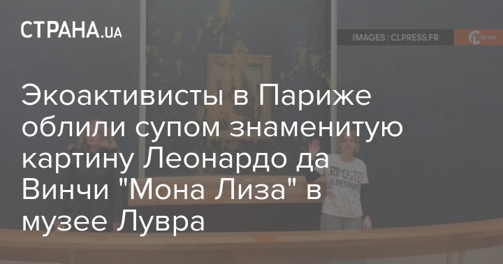Экоактивисты супом облили в Париже картину Леонардо да Винчи. Скриншот